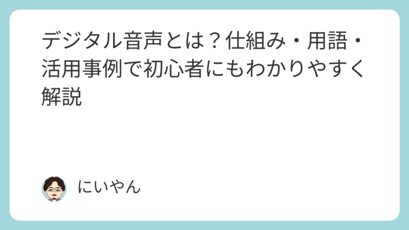 スマートフォンやテレビ、音楽ストリーミングサービスなど、私たちの日常はデジタル音声技術であふれています。しかし「デジタル音声とは何か?」「どのような仕組みで動いているのか?」といった疑問を持つ方も多いでしょう。本記事では、デジタル音声の基本から専門用語、利用例までをわかりやすく解説します