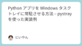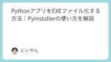 今回GUIのツールを作成してみましたが、以下の記事で紹介したPythonをExe化する方法を一緒に使えば、コマンドプロンプトを起動することなくツールを起動して使用できます。
