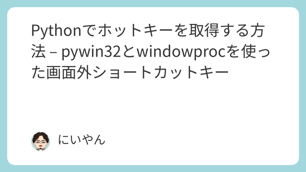 この記事では、PythonでWindowsのショートカットキーを、実行画面以外から取得する方法を紹介します。pywin32とwindowprocを使った方法で、他のアプリにフォーカスが当たっていても、Pythonアプリでキー入力を取得できます。