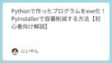 この「pyinstaller」を実行することで、windowsで実行可能なexeファイルに簡単に変換することができます。