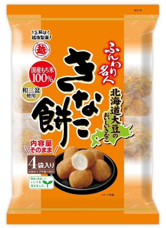越後製菓の「ふんわり名人 きなこ餅」は、ふわふわ食感と香ばしいきな粉の風味がたまらない、まさに至福のお菓子です。