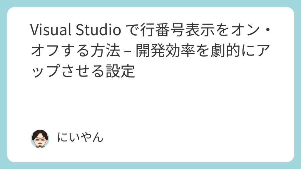 この記事では、Visual Studio で行番号の表示設定を行う方法について解説しました。行番号の表示は、開発効率を大きく向上させる設定の一つです。まだ設定していない方は、ぜひ試してみてください。