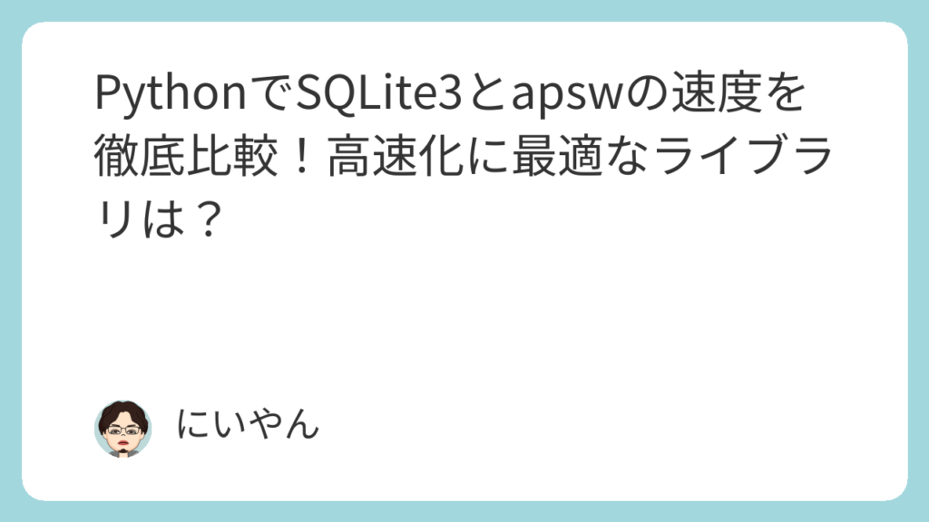 本記事では、apswがsqliteデータベースを扱う上で高速だと噂を聞いたので、実際にSQLite3とapswの速度比較を実際にコードを用いて行い、それぞれのライブラリの性能を徹底的に検証します。