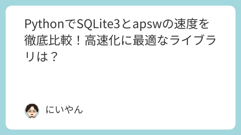 Pythonでデータベース操作を行う際に、SQLite3とapswのどちらを使うか迷う方も多いのではないでしょうか?