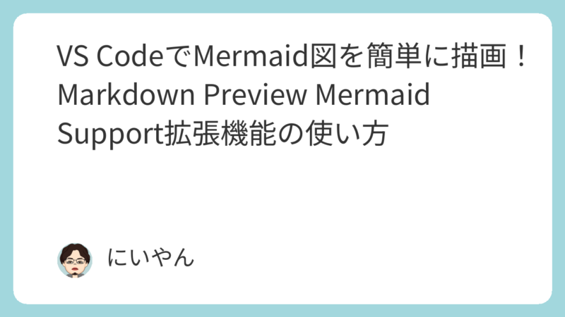 Mermaid記法を使って、フローチャートやシーケンス図などをVS Code上で手軽に作成したいと思ったことはありませんか? Markdown Preview Mermaid Support拡張機能を使えば、それが可能です! この記事では、この拡張機能のインストール方法から簡単な使い方、そしてちょっとしたTipsまで、図解を交えて分かりやすく解説します。
