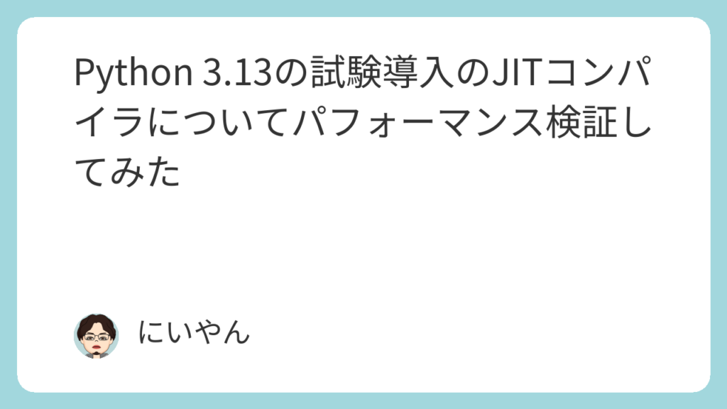 Python 3.13がリリースされ、試験導入された機能の一つにJIT(Just-In-Time)コンパイラの導入というのがあったので実際に動かして評価してみたので共有します。