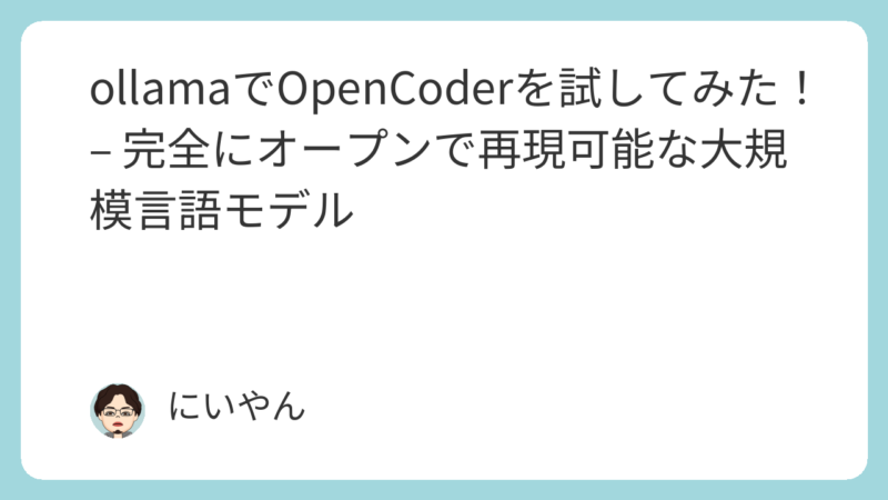 Ollamaに新たにモデルがリリースされた「OpenCoder」を試してみました。ollamaはローカルでAIモデルを実行できるツールで、OpenCoderを気軽に試せる点が魅力です。今回は、OpenCoderを使って簡単なサーバー・クライアントプログラムを生成し、実際に動作させてみたので、その様子をレポートします。