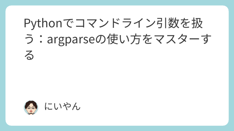 この記事では、argparse の基本的な使い方から、高度な機能までを網羅的に解説しました。この記事が、argparse を活用して、より洗練されたコマンドラインアプリケーションを開発する手助けになれば幸いです。