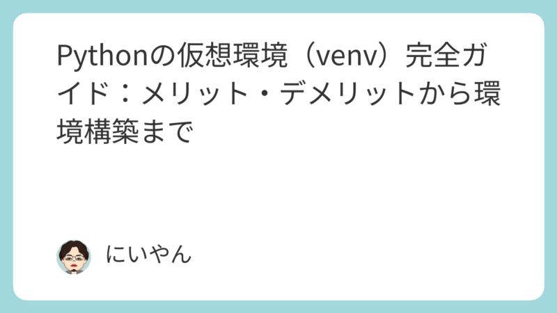 pip freeze > requirements.txtPythonの仮想環境は、開発プロジェクトの効率的な管理と安全な実行環境の構築に不可欠なツールです。適切に使用することで、プロジェクト管理の効率化、システムの安全性確保、チーム開発の円滑化が実現できます。初期設定に少し手間がかかりますが、得られるメリットは大きく、現代のPython開発において必須のスキルと言えます。