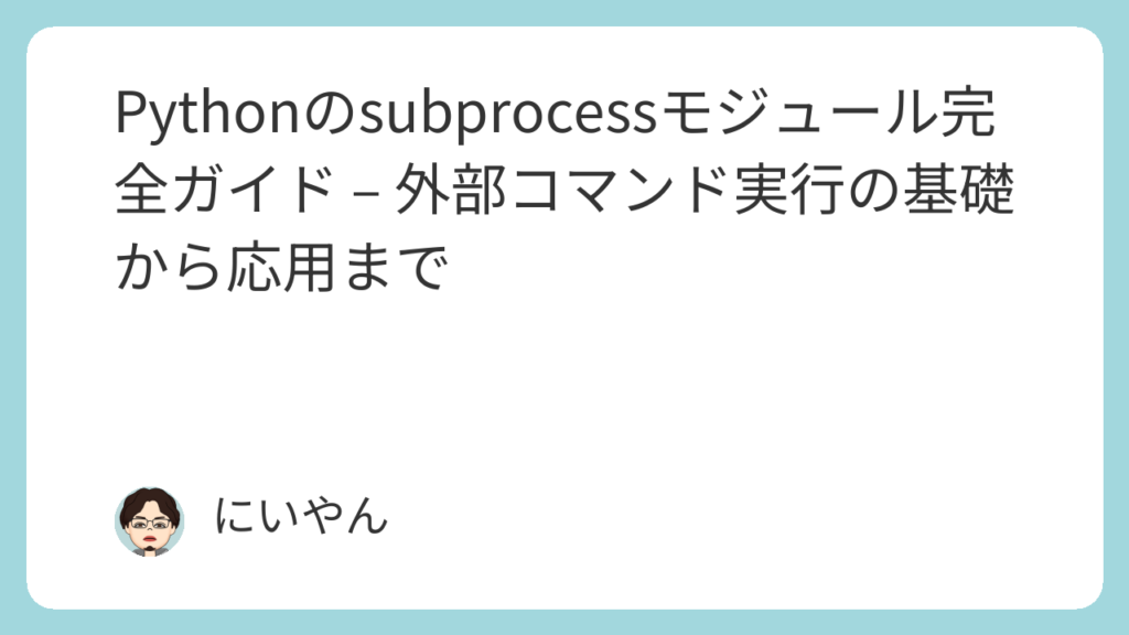 - テックアカデミーのsubprocessモジュール入門 – 初心者向けの分かりやすい解説と基本的な使用例が掲載されています