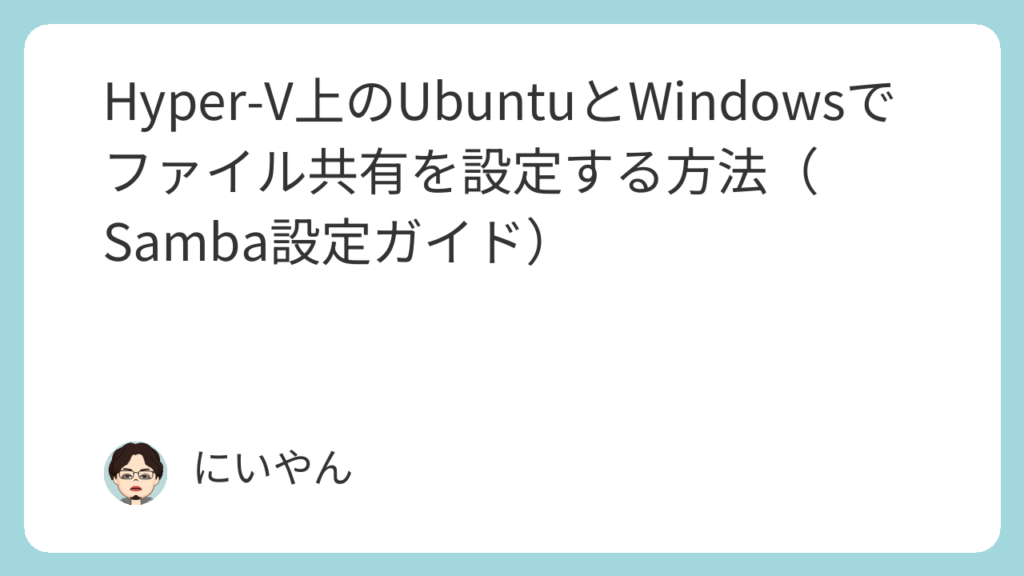 以上の手順で、Hyper-V上のUbuntuとWindowsホスト間でのファイル共有環境を構築できます。Sambaを使用することで、異なるOS間でもスムーズなファイル共有が可能になります。設定後は、Windowsのエクスプローラーから直接Ubuntuの共有フォルダにアクセスできるため、効率的なファイル管理が実現できます。