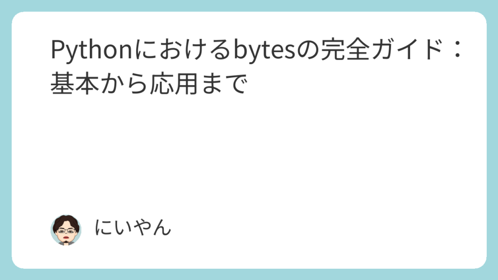 Pythonのbytes型は、バイナリデータを扱う上で非常に強力なツールです。文字列との相互変換、ファイル操作、16進数表現との変換など、多岐にわたる機能を提供します。本記事で紹介した基本的な使い方を押さえておけば、ほとんどの場面で適切にbytesを扱うことができるでしょう。バイナリデータを扱う際には、bytesの特性を理解し、適切に活用することが重要です。