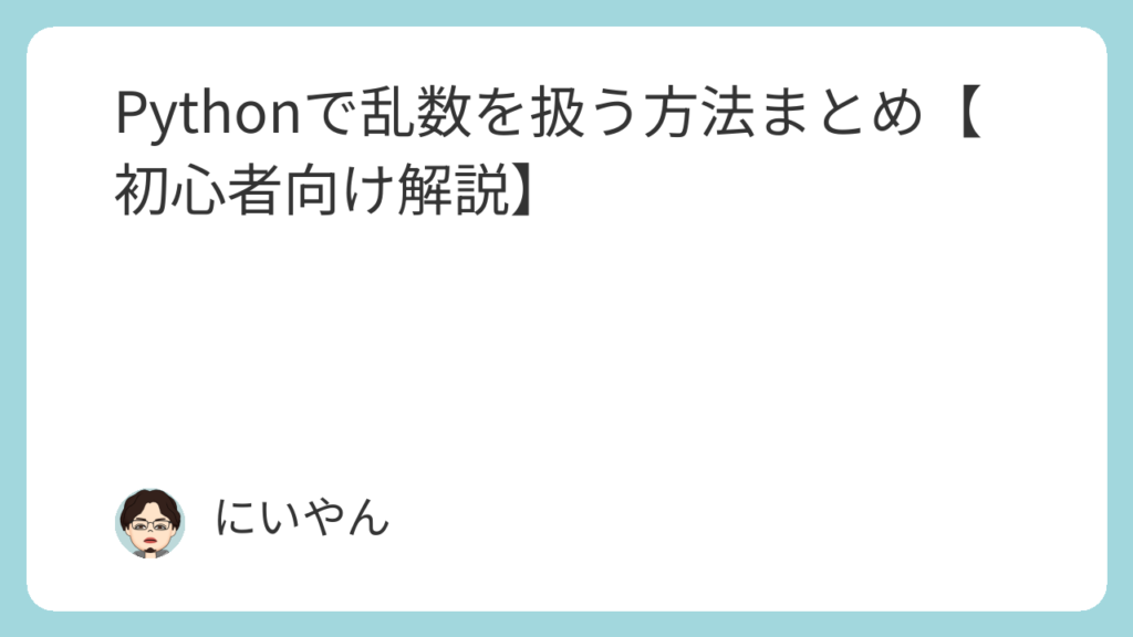 Pythonの乱数生成は主にrandomモジュールを利用します。