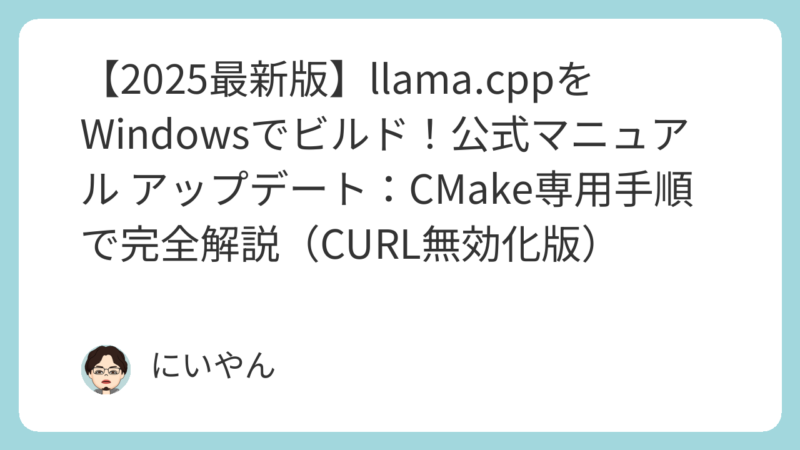 この記事では、ローカルLLM「llama.cpp」を2025年最新版の手順で、Windows環境にCURL機能を無効化してビルド・実行する方法を、必要なツールのインストールから丁寧に解説します。
