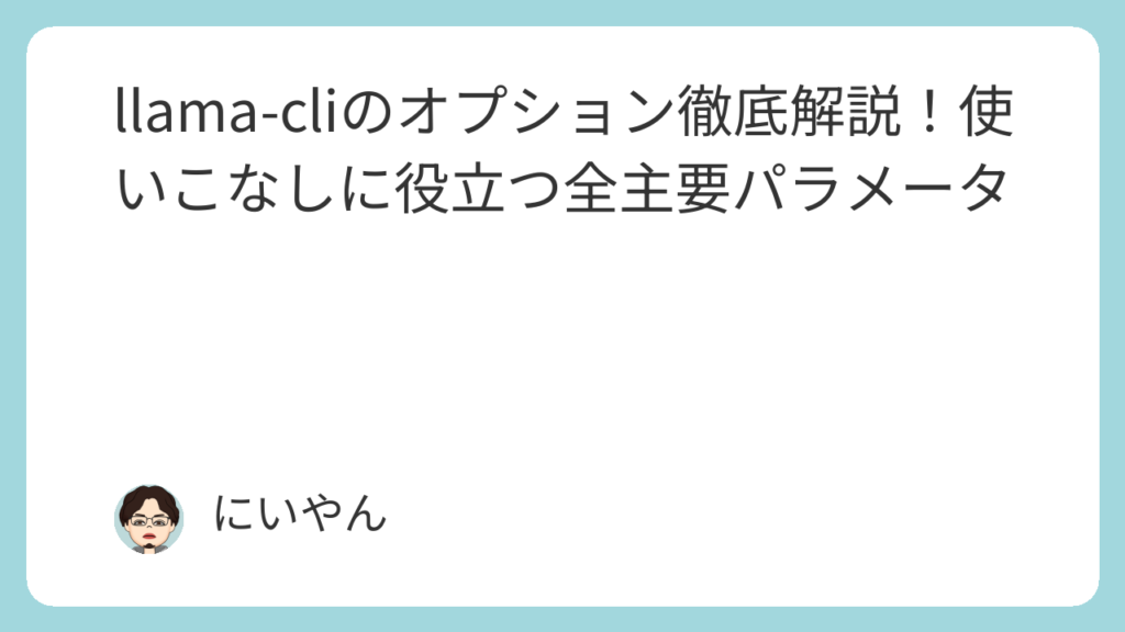llama-cliは多彩なオプションで動作を細かくカスタマイズできます。表を参考に、用途や環境に合わせて最適な設定を実現してください。