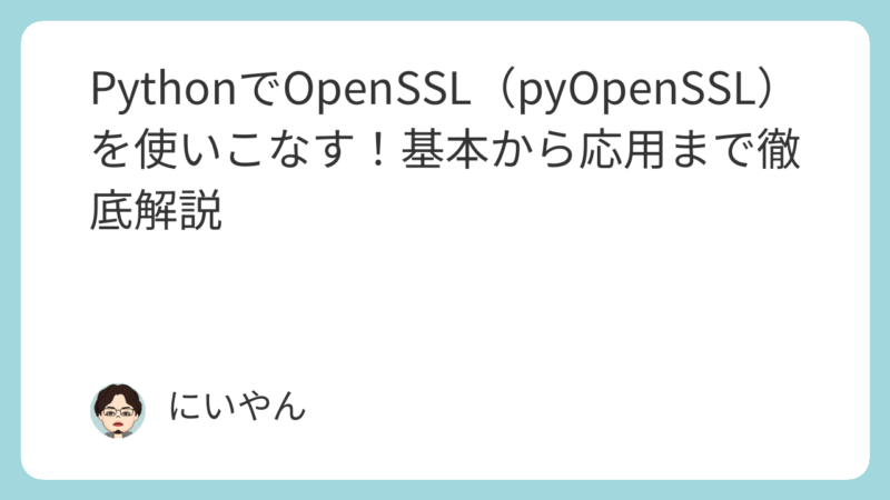 PythonでOpenSSL(pyOpenSSL)を使いこなすための実践的な解説とサンプルコードを紹介します。この記事では、pyOpenSSLのインストール方法から鍵ペア生成、証明書作成、SSL/TLS通信まで幅広く取り扱い、初心者から中級者まで役立つ内容をまとめました。