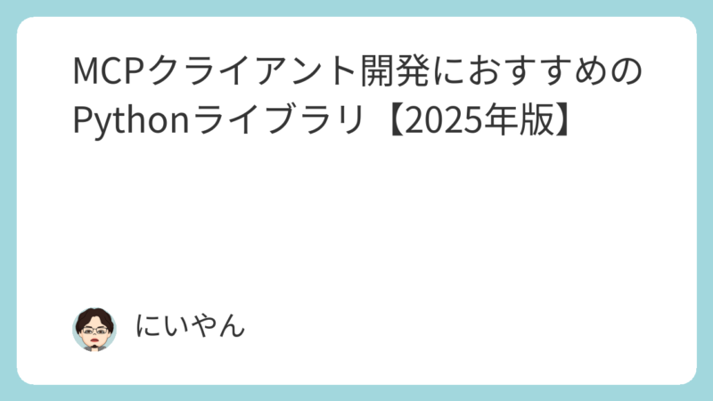 AIエージェントや外部ツール連携の新潮流として注目されるMCP(Model Context Protocol)。PythonでMCPクライアントを実装する際に役立つおすすめライブラリや実装例、周辺ツールをまとめました。MCPクライアント開発を検討している方はぜひ参考にしてください。