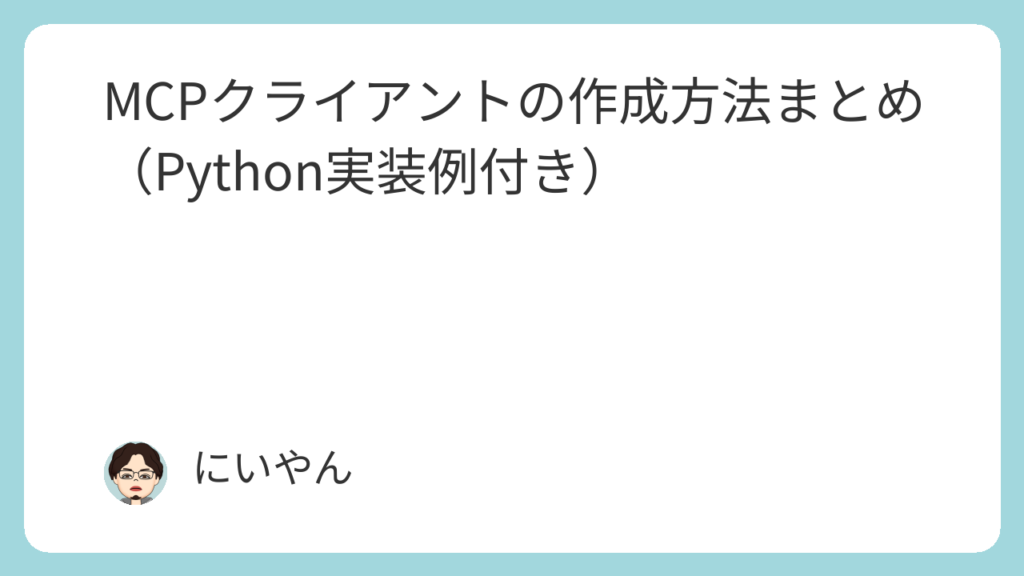 - Pythonならmcpライブラリ、AI連携ならLangChainやlangchain-mcp-adaptersが便利