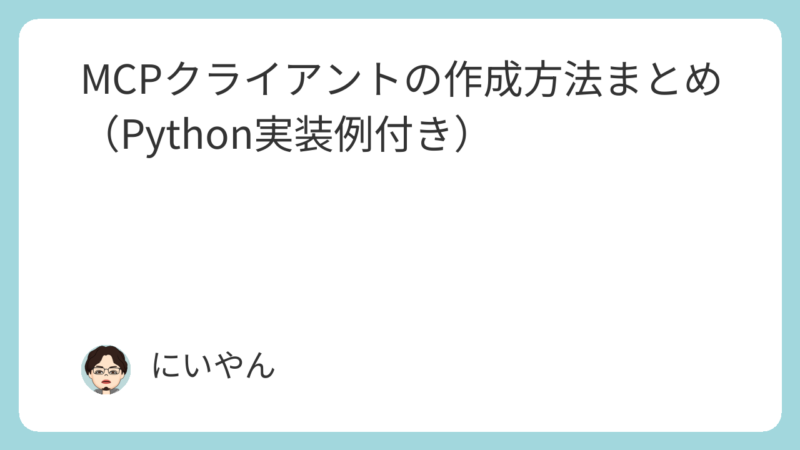 以下は、PythonでMCPクライアントを自作するシンプルな例です。AI連携なしで、ユーザーの指示に従いMCPサーバーのツールを直接呼び出します。