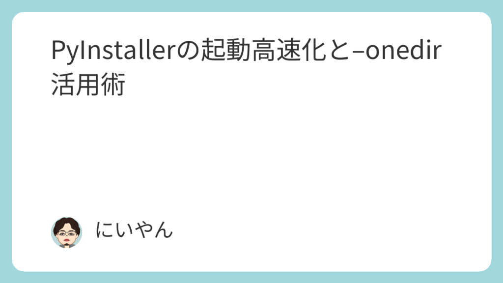 - PyInstallerの–onefileは配布が簡単だが、起動が遅くなる(一時展開処理のため)。