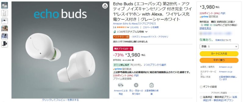 Echo Buds(エコーバッズ)第2世代がAmazonプライム限定セールで驚異の73%OFF【2025年9月30日最新情報】—外音取り込み機能、置くだけ充電ケース搭載の高コスパワイヤレスイヤホンが3,980円!