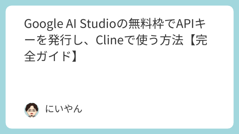Googleが提供する生成AI開発環境「Google AI Studio」。無料枠からAPIキーを発行すれば、VSCode拡張機能「Cline」でGeminiモデルを活用できます。この記事では、無料版AI StudioからAPIキーを発行し、Clineに設定するまでをわかりやすく解説します。