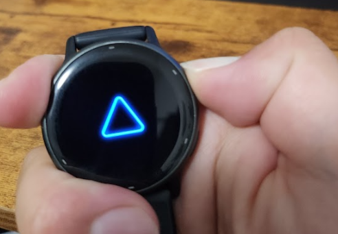 再起動後は△マーク(Garminロゴ)が数秒表示され、そのあと通常のウォッチフェイスが現れます。
