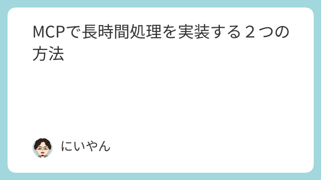 MCP(Model Context Protocol)を用いたツール開発で、処理が長時間かかる場合には、環境によってはタイムアウトのリスクがあります。タイムアウト時間は環境や実装に依存し、一例として数十秒から数分程度で切断される場合があります。こうした制限を意識して、長時間処理の設計には2つの基本方針があります。