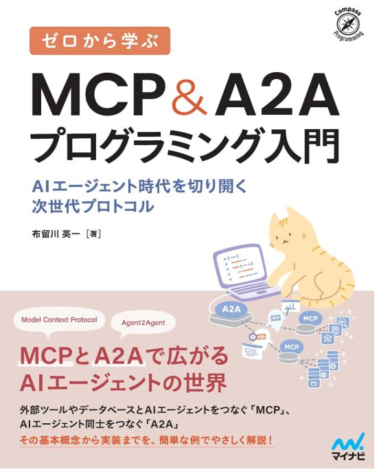 2025年刊行の新作で、MCP基本概念からサーバ・クライアント実践、さらにエージェント間連携(A2A)まで豊富なサンプル付きで学べます。Amazon MCPランキング1位獲得の信頼作。