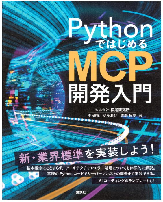 PythonでのMCPプログラミングを丁寧に解説。サンプルコード満載で、実践的にMCPの理解を深めたいプログラマーに最適。