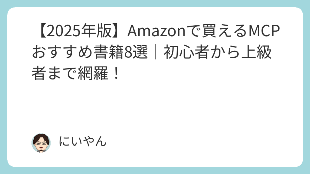 2025年はMCP関連の書籍が急速に充実し、入門者から開発・運用の実務者まで幅広く対応できるようになりました。図解で基本から学べる日本語入門書、API連携や実装を深く解説した中級・上級者向け書籍、英語圏の最新動向に触れられる専門書まで、Amazonで購入可能な良書が揃っています。学習目的やレベルに合った適切な書籍を選び、Amazonのアフィリエイトリンクを活用して紹介することで、読者に価値ある情報を届けられます。ぜひこの8冊を参考に、MCPの理解を深めてください。