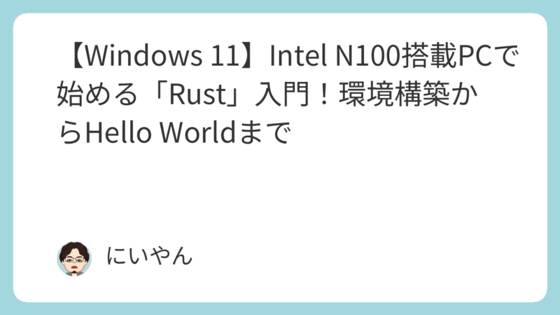 結論から言うと、Intel N100搭載のWindows 11 PCでも、Rustの学習や個人開発は十分に可能です!
