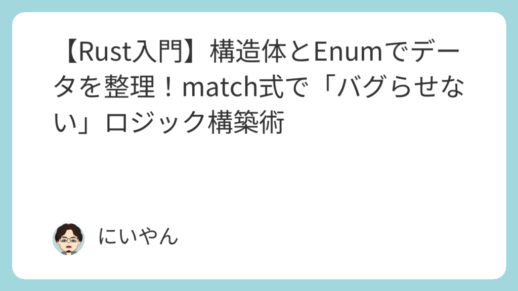 今回は、バラバラのデータをひとまとめにして扱いやすくする「構造体(Struct)」と、Rustにおいて非常に強力な機能を持つ「列挙型(Enum)」、そしてそれらを安全に処理する「match式」について学びます。