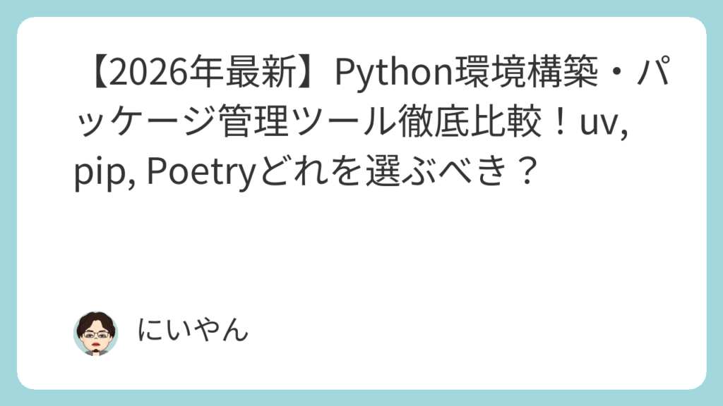 pip、venv、Poetry、そして最近話題のuvなど、ツールが多すぎて「結局どれを使えばいいの?」と迷ってしまいますよね。