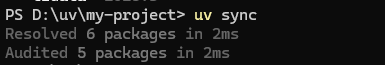 uv syncこれで、uv.lock に基づいた「正解の環境」が自分のPCに再現されます。