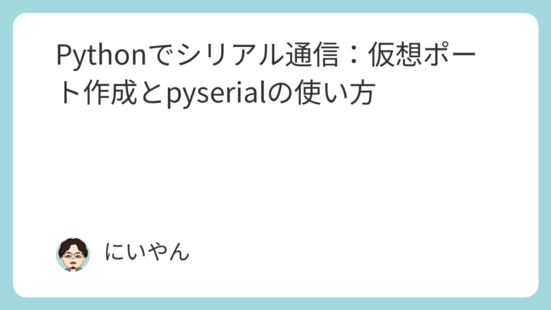 ser.close()この記事では、Pythonでシリアル通信を行う方法を解説しました。仮想ポート作成からpyserialライブラリの使い方、注意点まで詳しく説明しました。