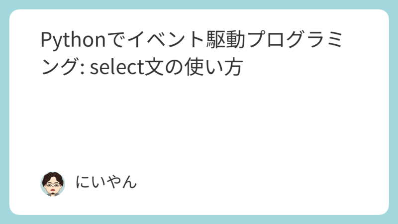 こういったことを解決するために、LinuxではSelect関数を使って、複数のIO入力を取得する方法があります。そして、実はPythonにもSelectライブラリが組み込まれていて、同じような使い方ができるようになっているんです。