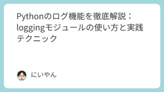 Python Pythonのログ機能を徹底解説:loggingモジュールの使い方と実践テクニック Pythonのloggingモジュールを使ったログ機能の基本から実践的な活用方法までをわかりやすく解説。ログレベルや出力先の設定、運用のコツなど、初心者から現場のエンジニアまで役立つ情報をまとめています。 2025.06.25 2025.11.30 Pythonプログラム技術
