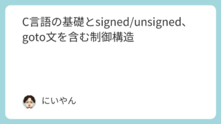 C言語 C言語の基礎とsigned/unsigned、goto文を含む制御構造 C言語の基本構文やデータ型、signed・unsignedの違い、if文やfor文、goto文などの制御構造を初心者向けにわかりやすく解説。これからC言語を学びたい方に最適な入門記事です。 2025.06.26 2025.11.30 C言語プログラム技術