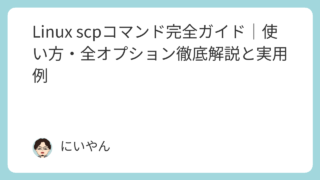 linux Linux scpコマンド完全ガイド|使い方・全オプション徹底解説と実用例 Linuxのscpコマンドを徹底解説。ファイルやディレクトリの安全・高速な転送方法、主要オプション一覧、具体的な使い方・活用例も掲載。初心者から上級者まで役立つ実践的ガイドです。 2025.08.27 2025.11.30 RaspberryPiUbuntulinux技術