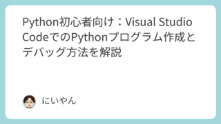 Python Visual Studio Codeを使用したPython開発環境の構築方法 前回の記事で、Pythonをパソコンに導入する方法について記載しました。まだ見ていない方で、導入の仕方がわからないという方は↓をみてみてください。では今回は、開発環境を構築するやり方と開発で使用するエディタについて記載します。一般的には、Anacondaというツールを使用するようですが、筆者はちょっ... 2021.09.14 2024.12.03 Pythonプログラム技術