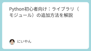 Python Python初心者向け:ライブラリ(モジュール)の追加方法を解説 前回までで、Pythonの導入や開発環境の構築をするところまでを記載しました。まず構築の仕方が知りたいよって方は↓を見てみてください。続いては、実際の開発をと思っていましたが、その前に重要なことを忘れていましたので、この記事では、そちらを記載しようと思います。その重要なことは、ライブラリの追加です。... 2021.09.17 2025.02.06 Pythonプログラム技術