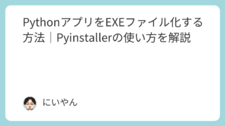 Python PythonアプリをEXEファイル化する方法|Pyinstallerの使い方を解説 Pythonで作成したアプリをWindowsで実行可能なEXEファイルに変換する方法を、Pyinstallerを使って解説します。インストールから実行方法、エラー対策まで、初心者でもわかりやすく解説します。 2021.09.21 2025.02.06 Pythonプログラム技術