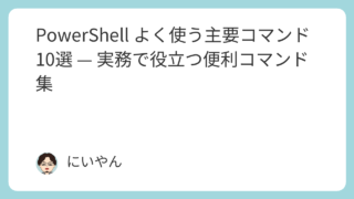 技術 PowerShellコマンドの基本まとめ PowerShellの基本操作からファイル管理・プロセス制御・ユーザー管理まで、現場で役立つ主要コマンドを用途別にわかりやすく整理。日々のWindows運用や自動化にすぐ使えるリファレンスです。 2025.07.15 2025.11.30 技術