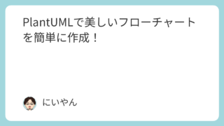 PlantUML PlantUMLで美しいフローチャートを簡単に作成! システム設計や業務フローの可視化に欠かせないフローチャート。 複雑な処理もスッキリと図解できれば、チーム内での共有や顧客への説明もスムーズになりますよね。 そこでおすすめなのが、テキストベースでフローチャートが作成できるPlantUMLです。 今回は、PlantUMLの基本的な使い方から、様々な表現... 2024.10.14 2025.11.30 PlantUML技術