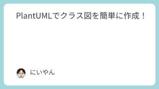 PlantUML PlantUMLでクラス図を簡単に作成! PlantUMLを用いてクラス図を作成するための構文を、網羅的に解説します。この記事を読めば、基本的な図形から複雑な関係性まで、PlantUMLで表現力豊かなクラス図を自在に描けるようになります。PlantUMLとは?PlantUMLは、シンプルなテキスト記述でUMLダイアグラムやフローチャートを作... 2024.10.16 2025.11.30 PlantUML技術