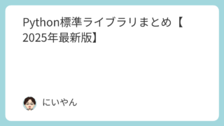 Python Python標準ライブラリまとめ【2025年最新版】 Python標準ライブラリの主要モジュールを用途や特徴、サンプルコード付きで分かりやすく解説。初心者から中級者まで役立つ、2025年最新版のPython標準ライブラリまとめ記事です。 2025.05.01 2025.11.30 Pythonプログラム技術