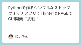 Python Pythonで作るシンプルなストップウォッチアプリ:TkinterとPAGEでGUI開発に挑戦! Pythonで作るシンプルなストップウォッチアプリ!TkinterとPAGEを使ってGUI開発に挑戦!初心者でも分かりやすく解説します。GUIアプリ開発の基礎を学びたい方は必見です! 2024.11.02 2025.11.30 Pythonプログラム技術