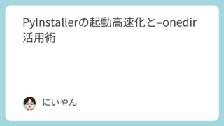 Python PyInstallerの起動高速化と–onedir活用術 PyInstallerで作成したPython実行ファイルの起動を高速化する方法を解説。--onefileと--onedirの違いや、--onedirオプションの活用による起動速度改善のポイントをわかりやすくまとめています。配布や業務利用に最適なPyInstallerの使い方を知りたい方におすすめの記事です。 2025.07.03 2025.11.30 Pythonプログラム技術